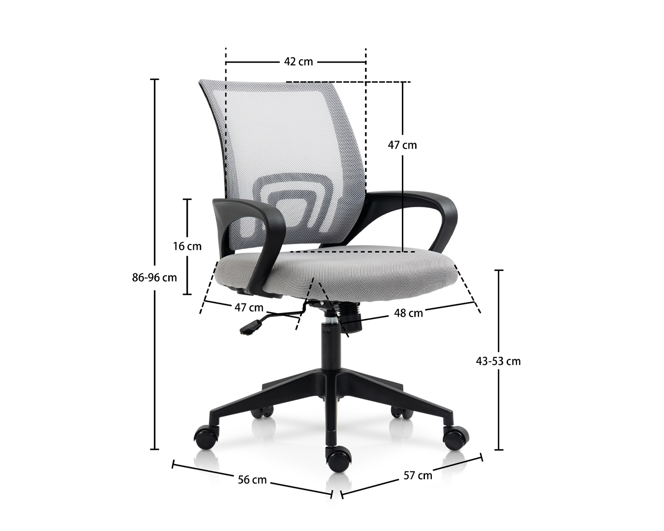 • Der Grau Mesh Office Chair ist die perfekte Balance zwischen Komfort und Stil. Mit einem modernen und klassischen grauen Netz zurück, der Atmungsaktivität ermöglicht, können Sie auch während der geschäftigsten Arbeitstage kühl bleiben.