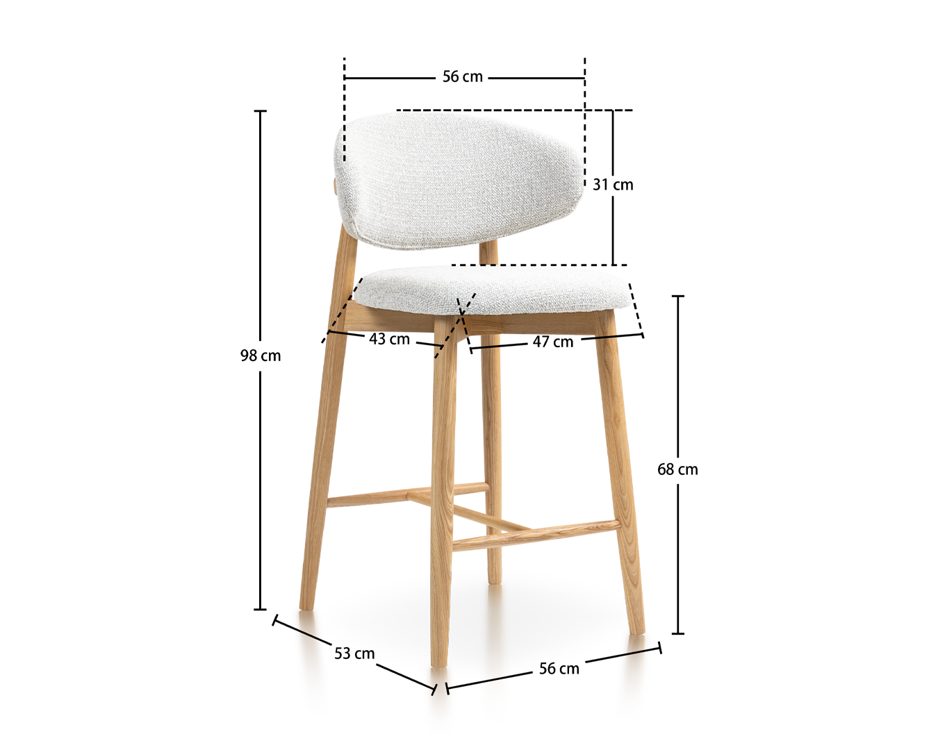 • Aus haltbarem Aschenholz gefertigt und für perfekt zu Bartern oder Kücheninseln gepaart. Der robuste Rahmen und der ergonomische Sitz sorgen für eine lang anhaltende Unterstützung, während das schlanke Design sie zu einer guten Passform für zeitgenössische oder rustikale Innenräume macht.